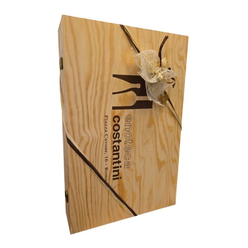 Cassetta in Legno serigrafata Enoteca Costantini di colore Mogano con separatori interni. Perfetta come regalo. Bottiglie non incluse e ordinabili separatamente qui sul nostro sito.
