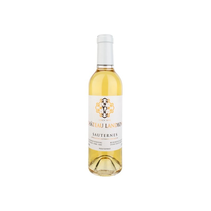 Il Sauternes AOC Château Landion è un vino dolce di grande eleganza, espressione della tradizione del Bordeaux più nobile. Ottenuto da un blend di Sémillon e Sauvignon Blanc, nasce da una vendemmia tardiva manuale che consente alle uve di raggiungere una perfetta concentrazione aromatica. La fermentazione in acciaio è seguita da un affinamento combinato tra barrique e acciaio, che dona al vino equilibrio tra ricchezza e freschezza. Nel calice si presenta con un giallo dorato intenso. Il bouquet è ampio e seducente, con note di frutta tropicale, miele e fiori di acacia, arricchite da eleganti sfumature di vaniglia. Al palato è pieno e avvolgente, sostenuto da una dolcezza armoniosa ben bilanciata da una freschezza vivace, che accompagna il sorso verso un finale lungo e raffinato.