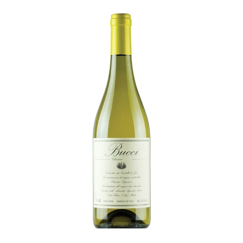 Il Verdicchio dei Castelli di Jesi DOC di Villa Bucci presenta alla vista un colore giallo paglierino intenso. Al naso emerge un profumo delicato e persistente, fruttato con sentori di mela golden e mandorla. Il sapore in bocca è equilibrato, secco, di buon corpo ed elegante.