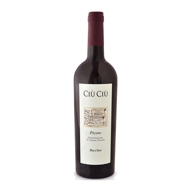 Il Piceno Bacchus di Ciù Ciù si presenta di colore rosso rubino con sfumature violacee nel tempo mutanti all’aranciato. Armonicamente complesso, vinosofruttato, floreale evolvendosi all’etereo. Al gusto secco, giustamente tannico con corpo spiccato. Esprime le sue migliori caratteristiche tra il primo e il secondo anno di vita. Nelle annate e condizioni migliori la maturazione gli conferisce maggior equilibrio e morbidezza. Per aumentare il livello qualitativo del prodotto si sono selezionate le uve migliori.