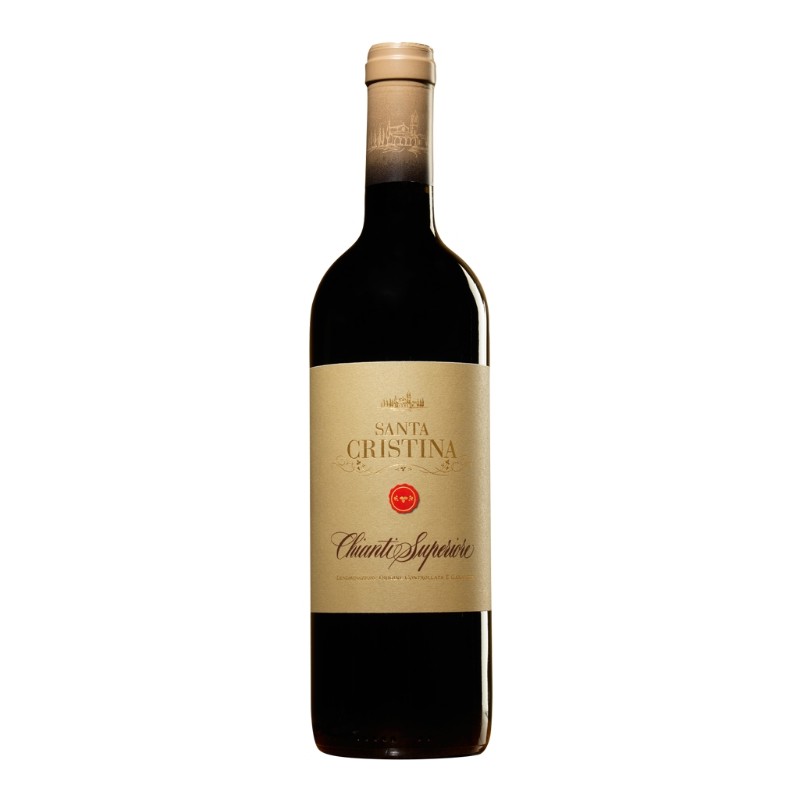 Il Chianti Superiore Santa Cristina si presenta di colore rosso rubino con riflessi violacei, presenta un profumo speziato con note di frutta rossa che ricordano la ciliegia. Al palato è aromatico con tannini morbidi ben amalgamati. Il finale ricorda la frutta rossa percepita al naso.